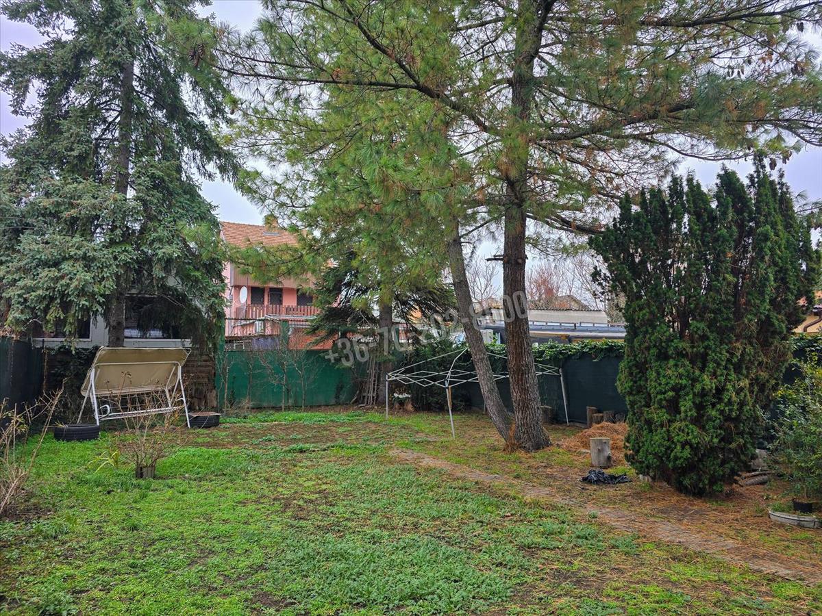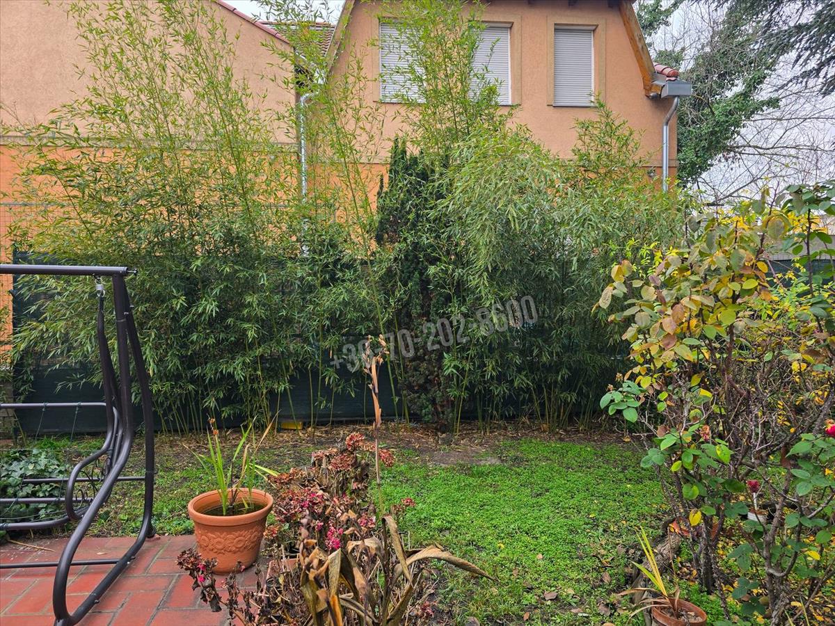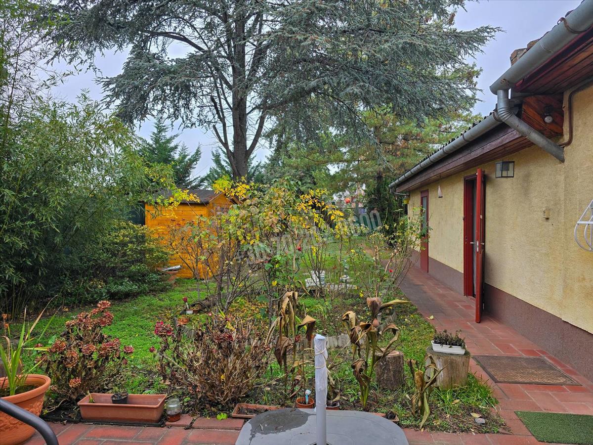 A kert gondozott, karbantartott, fákkal és bokrokkal beültetett, nyugodt, barátságos környezetet biztosít. a telken található kerti tároló, valamint a locsolás gazdaságosan megoldható a külön vízórával ellátott kerti locsolónak köszönhetően.