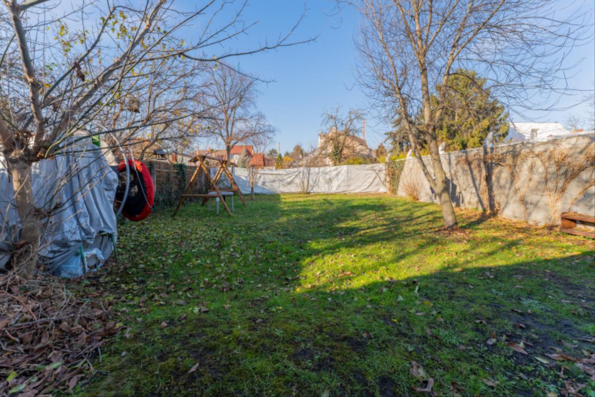 A telek hátsó részén nagy füves terület lett kialakítva, ami kiváló lehetőséget nyújt a szabadtéri pihenésre, családi vagy baráti összejövetelekre.