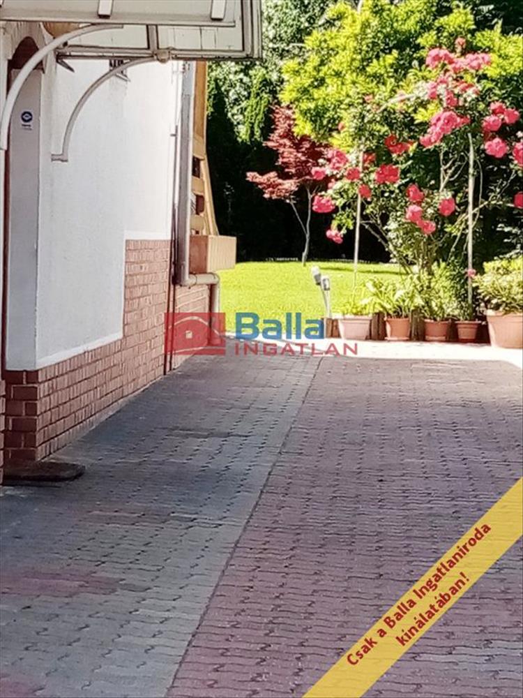 Fűthető, garázs elektromos kapuval (közvetlen házkapcsolattal), ablakos gardrób, hidromasszázs zuhanykabinos fürdő, kamra és beépített tároló. Innen nyílik a nagy étkezős konyha, melyből a 16 m²-es fedett teraszon át a gondozott hátsó kertbe léphetünk ki.