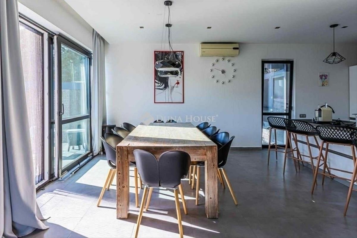 Eladó luxus villa Budapesten a 15. -Ik kerületben! Ez az ingatlan tökéletes választás azok számára, akik értékelik a modern építészeti megoldásokat, a kényelmet és a luxust. Ne hagyja ki ezt a kivételes lehetőséget, hogy Ön lehessen ennek az exkluzív otthonnak a tulajdonosa. Az épület egy kb. 330 m2 alapterületű, tégla építésű luxus ház. 2012-Ben épült. Két lakószinttel + egy hatalmas borospincével rendelkezik. Az elrendezése: hatalmas amerikai konyha+nappali, 4 szoba, 3 fürdőszoba, 3 gardrób( melyek szobává alakíthatók), téli kert, ahol a jacuzzi található és a borospince. a ház műszaki tartalma kimagasló színvonalú: a belső terek prémium burkolatokkal, bútorokkal és háztartási gépekkel lettek kialakítva. Az ingatlan belső tereit gondosan tervezték meg, hogy maximalizálják a kényelmet és a funkcionalitást. Az otthon melegét gáz kazánnal, míg a nyári hónapok kellemes hőmérsékletét klímaberendezéssel biztosíthatja a jövőbeli tulajdonos. a helyiségek praktikus elrendezésűek, stílusukat belsőépítész tervei alapján alkotta meg a tulajdonos. Műszaki tartalom:- gázfűtés padló és falfűtéssel-l égkondícionálás- Prémium hőszigetlet nyilászárók, hatalmas üvegfelületek- Jacuzzi- poroszsüveges borospince- iroda- több gardróbszoba- 2 állásos garázs- gyönyörű parkosított kertA telek 736 m2 területű. a házból nyíló udvari nézet nyugalommal tölti meg a lakóteret, Ez a sajátos elhelyezkedés teszi lehetővé, hogy élvezze a városi élet minden előnyét. a terület rendelkezik egy kb. 55 m2-es igényesen kivitelezett duplagarázzsal is. Az ingatlan nem csak modern kényelemmel, de kiváló közlekedési kapcsolatokkal is rendelekzik. Egy igazi ritkaság azok számára, akik minőségi lakókörnyezetre vágynak. Keressen bizalommal!