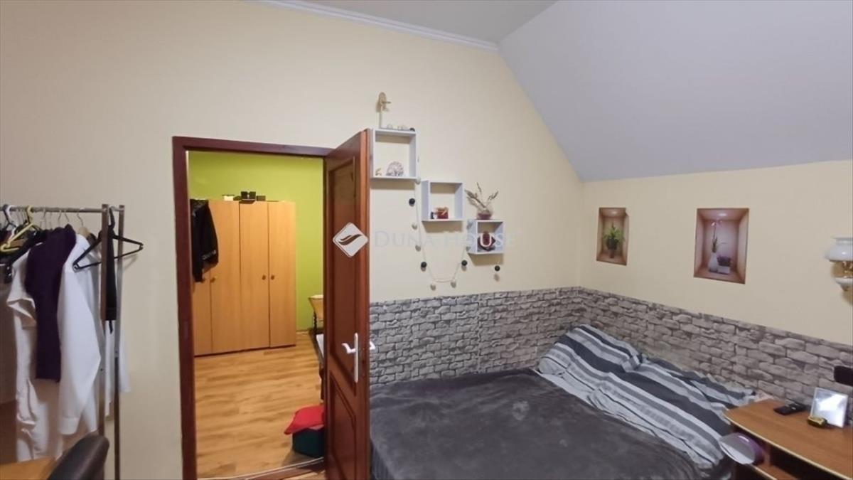 A felső szint 100 nm + 14 nm erkély teljesen külön bejárattal, önálló lakásnak kialakított nappali, 3 hálószoba, fürdő, wc, étkező és konyha. Található itt még egy 25 nm -es, jelenleg tárolónak használt szoba, valamint a 14 nm -es lépcsőház is beépíthető.