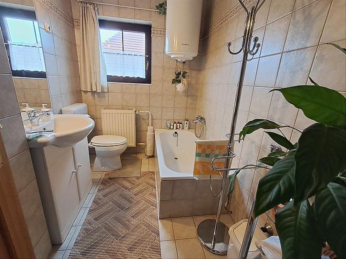 A burkolatok mindkét részben szép állapotban vannak. a ház alatt van egy 50 m2-es pince, ami jelenleg szerelőműhelyként funkcionál, a kertben pedig egy 2 szerelőaknás garázs is rendelkezésre áll.