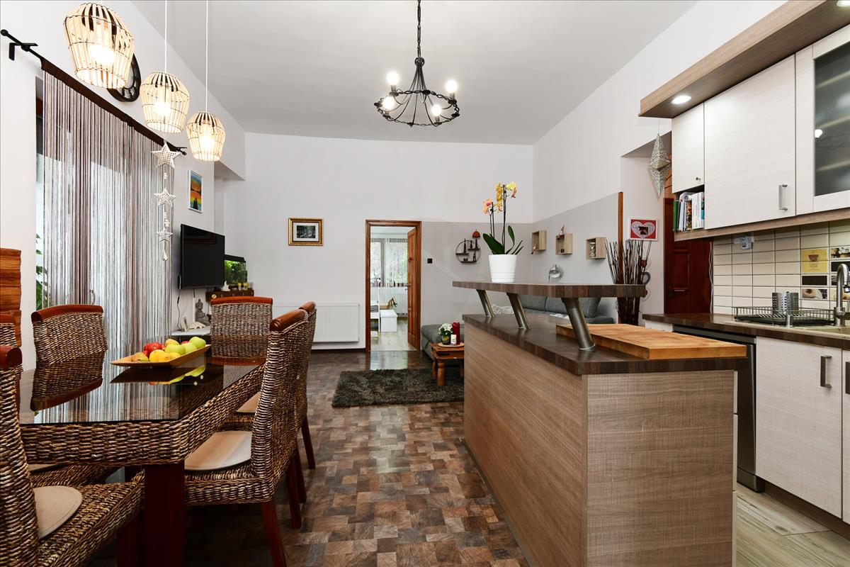 Eladásra kínálunk a XVI. kerület Rákosszentmihály részén egy 2015-ben teljes körűen felújított házat. Az ingatlan több generációnak vagy funkcióra alkalmas, mert van egy kisebb lakrész, amiben található egy szoba, konyha és egy fürdőszoba. a külön bejárat miatt alkalmas lehet irodának, home office-ra, fiatal vagy idősebb generáció részére egyaránt. a nagyobbik lakrészben van egy amerikai konyhás nappali, télikert, 3 szoba, fürdőszoba, mellékhelyiség, valamint egy 40nm -es száraz pince is, amit az előszobából tudunk megközelíteni. a két lakás igény szerint egybe is nyitható.
