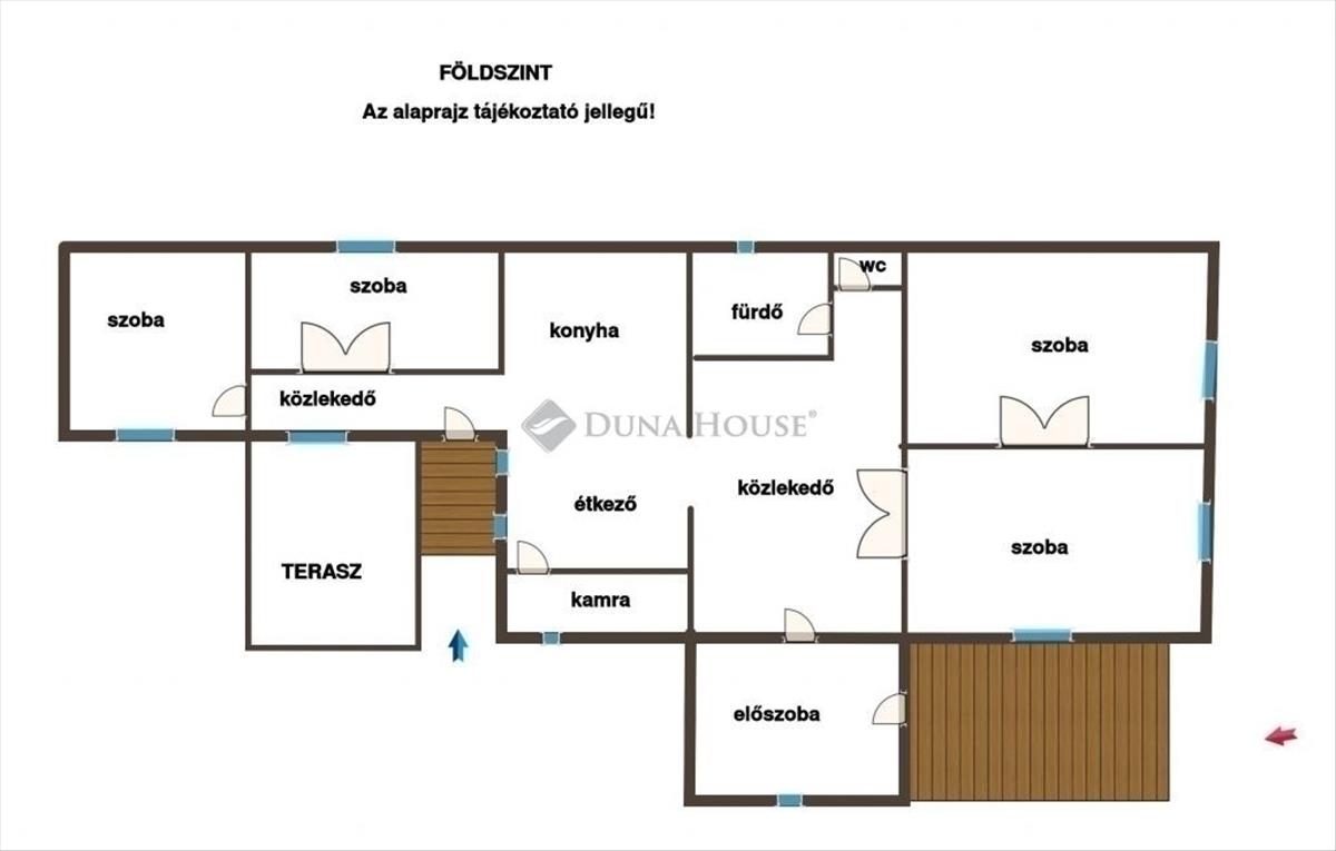 Földszint (125 nm ): Két bejárattal rendelkezik. Négy szoba, konyha+étkező, fürdőszoba, wc és kamra áll rendelkezésre.