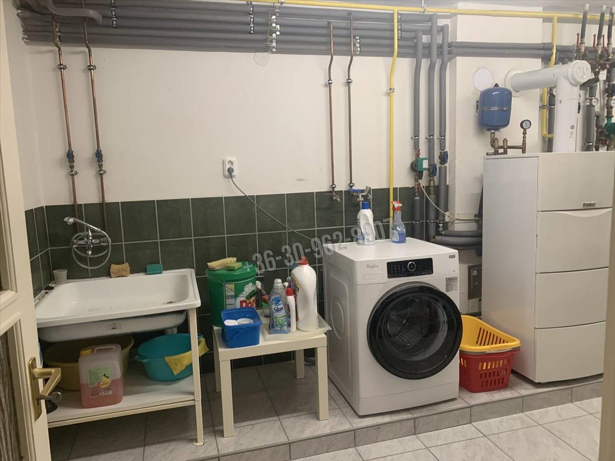 2 állásos garázs, (32m2 tárgyalónak kialakított szoba, (65m2) hobby szoba, (29m2)vasalószoba, (9m2) gépészet, háztartási helyiség, (21m2) kamra, tároló, (11m2) közlekedő, feljárat a lakásba(21m2)