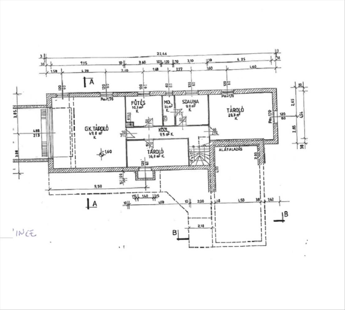 Az alsó szinten több gépkocsi parkolására van lehetőség. a házat kényelmes méretű kert öleli körül.