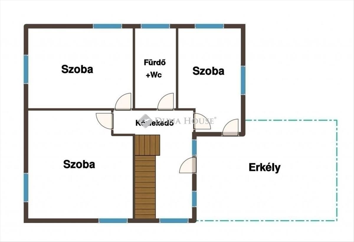 Az emeleten három külön bejáratú hálószoba, egy fürdőszoba, közlekedő, és egy 21 m²-es erkély található, amely tökéletes helyszíne lehet egy nyugodt esti pihenésnek.