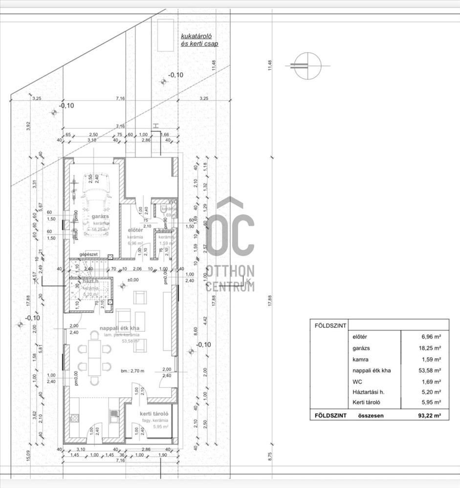 - a földszinten hatalmas 54 m2-es amerikai konyhás nappali, egy mosdó és egy háztartási helyiség, valamint egy garázs és egy kerti tároló kapott helyett