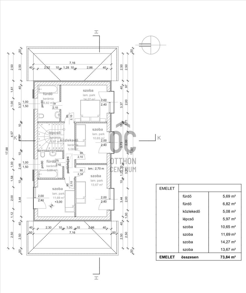 - az emeleten 4 halószoba, és két kádas fürdőszoba kerül kialakításra