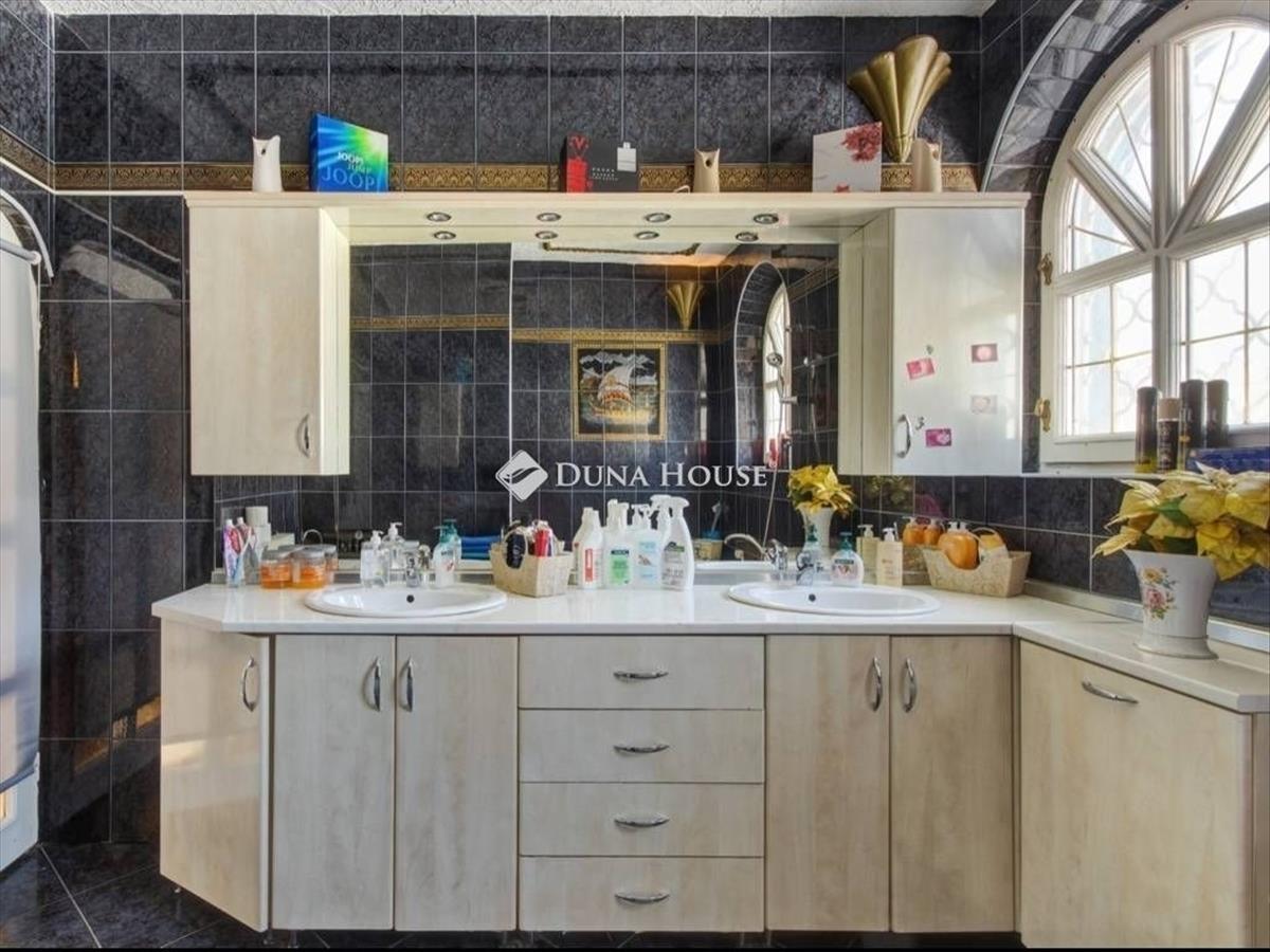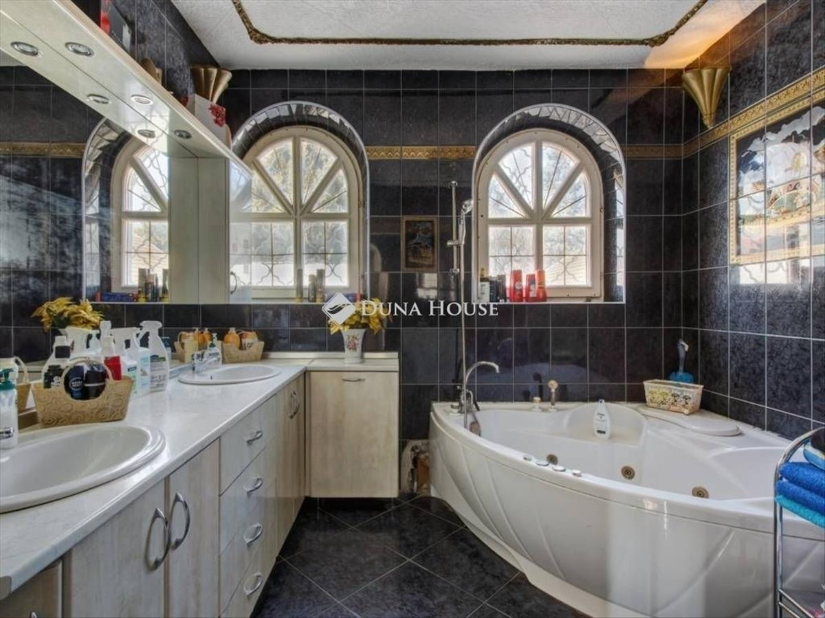 Egyedi adottságokkal és központi elhelyezkedéssel rendelkező, XVI. kerületi, kiváló állapotú családi ház tágas terekkel, 4 hálószobával és 3 fürdőszobával keresi új tulajdonosát. a 738 nm-es telken egy vendégház és egy medence is található, melyek az ár részét képezik.Az ingatlant 2000-be építették és tartozik hozzá egy hasonló kivitelezésű önálló 55 nm-s épület a telek hátsó részén, így több generáció külön élése is megoldható. a földszint központjában egy 60 nm-s nappali található egy hatalmas kandallóval. Fűtése cirkóról történik padlófűtéssel és lapradiátorokkal. Nyáron a kellemes hőmérsékletről klíma gondoskodik. Autóbeállásra a ház mellett van lehetőség, telken belül 6 autó részére. Az ingatlan teljes biztonságáról kamera és riasztórendszer gondoskodik.