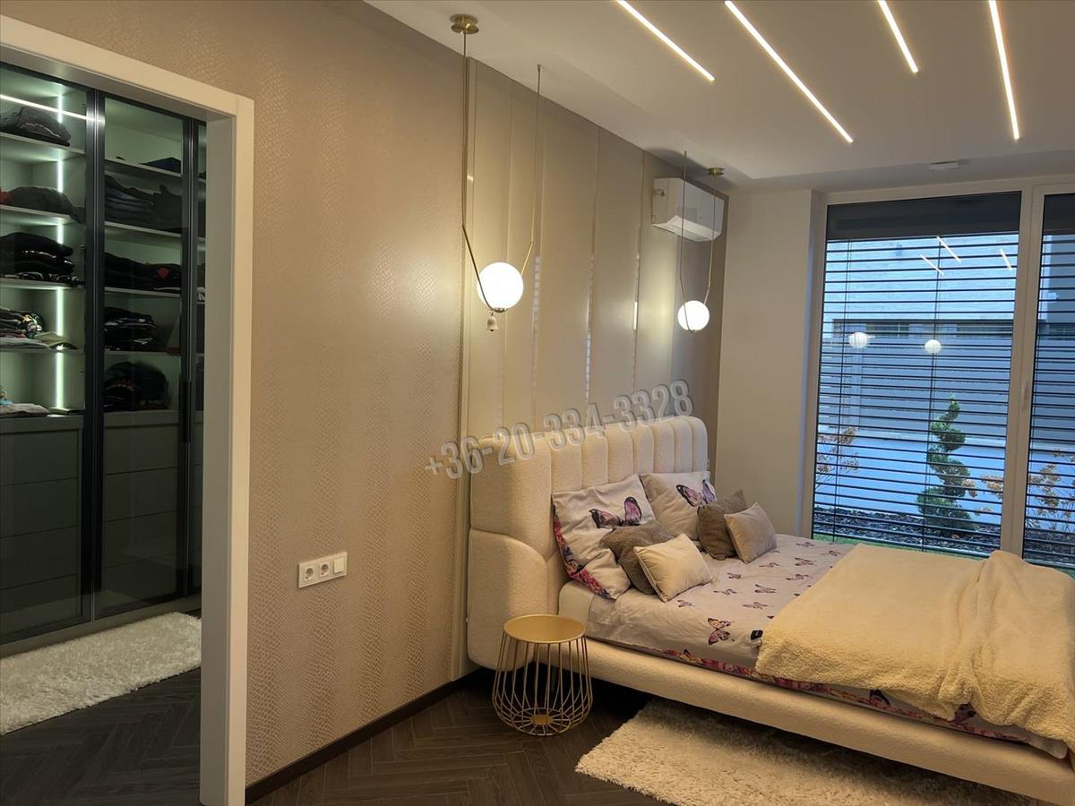 Master háló saját gardróbbal(üvegajtókkal, bőrhatású polcokkal) és fürdőszobával