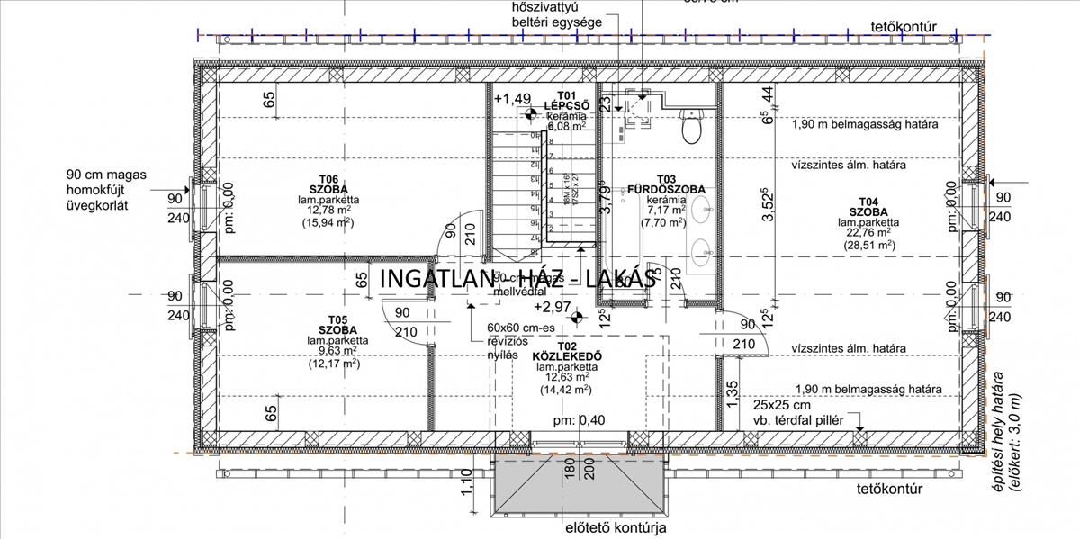 lépcső 6, 27 nm, közlekedő 11, 02 nm, fürdő 7, 17 nm, szoba 22, 76 nm, szoba 12, 78 nm, szoba 9, 63 nm