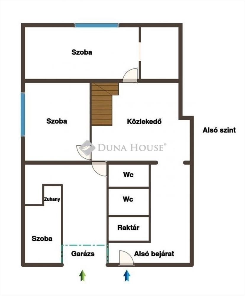 - Alsó szint: külön bejárattal iroda, tárgyaló, wellness és kiszolgáló helyiségek