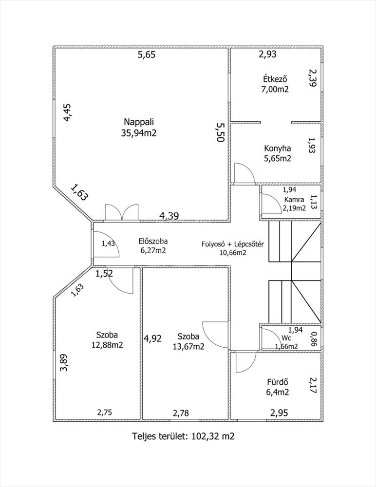 A ház háromszintes kialakítású (pince, földszint, emelet), összesen 6 szobával, hálófülkével és gardróbbal, valamint két fürdőszobával és toalettel. a földszinten egy tágas, jól felszerelt konyha található. a pincében dupla garázs kapott helyet, amelyhez fűtőszálas jégmentesítő rendszerrel ellátott lejáró tartozik – praktikus és kényelmes megoldás a téli hónapokra.