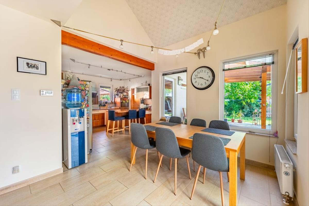 A ház különlegessége a tágas, fedett terasz, amely tökéletes helyszíne a családi és baráti összejöveteleknek. a nappali világos, nagy belmagasságával igazi otthonos hangulatot áraszt közvetlen kertkapcsolattal, az emeleti szobák pedig zavartalan nyugalommal szolgálnak. a konyha-étkező korszerű és kényelmes. a télikert egész évben élvezhető kertkapcsolatot ad.