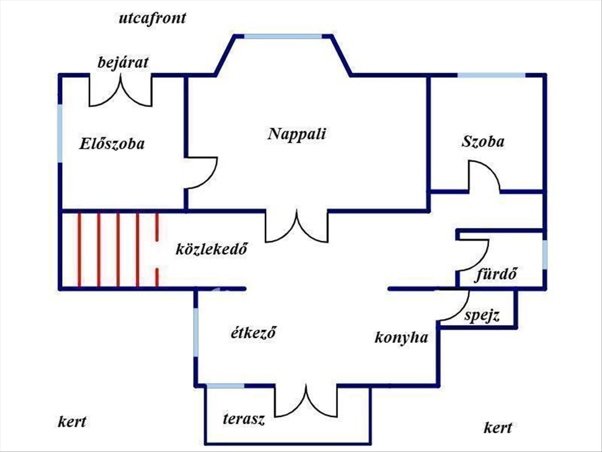 Lent a bejárat rögtön egy egy tágas nappali szobába vezet, innen egy közlekedőből a napfényes és hatalmas étkező- konyhába léphetünk, amely fantasztikus életteret ad a családnak, barátoknak a közösségi programokhoz is. Az étkezőből juthatunk ki a teraszra, ahonnan az egész kertre rálátás nyílik. Itt este és reggel is gyönyörködhetünk a napsütésben, a kert pedig kiválóan alkalmas növények, fák, és bokrok beültetésére.