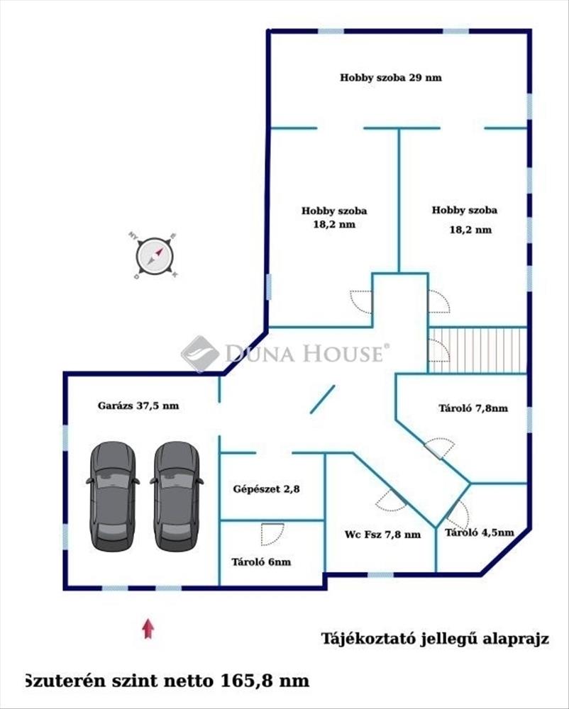 - 1089 nm-es telek, 40 nm-es dupla garázs, pincei tárolóhelyiségek ( raktár, gépészet, gamer szoba, hobbiszoba. . . . ) Közel 120 nm-en