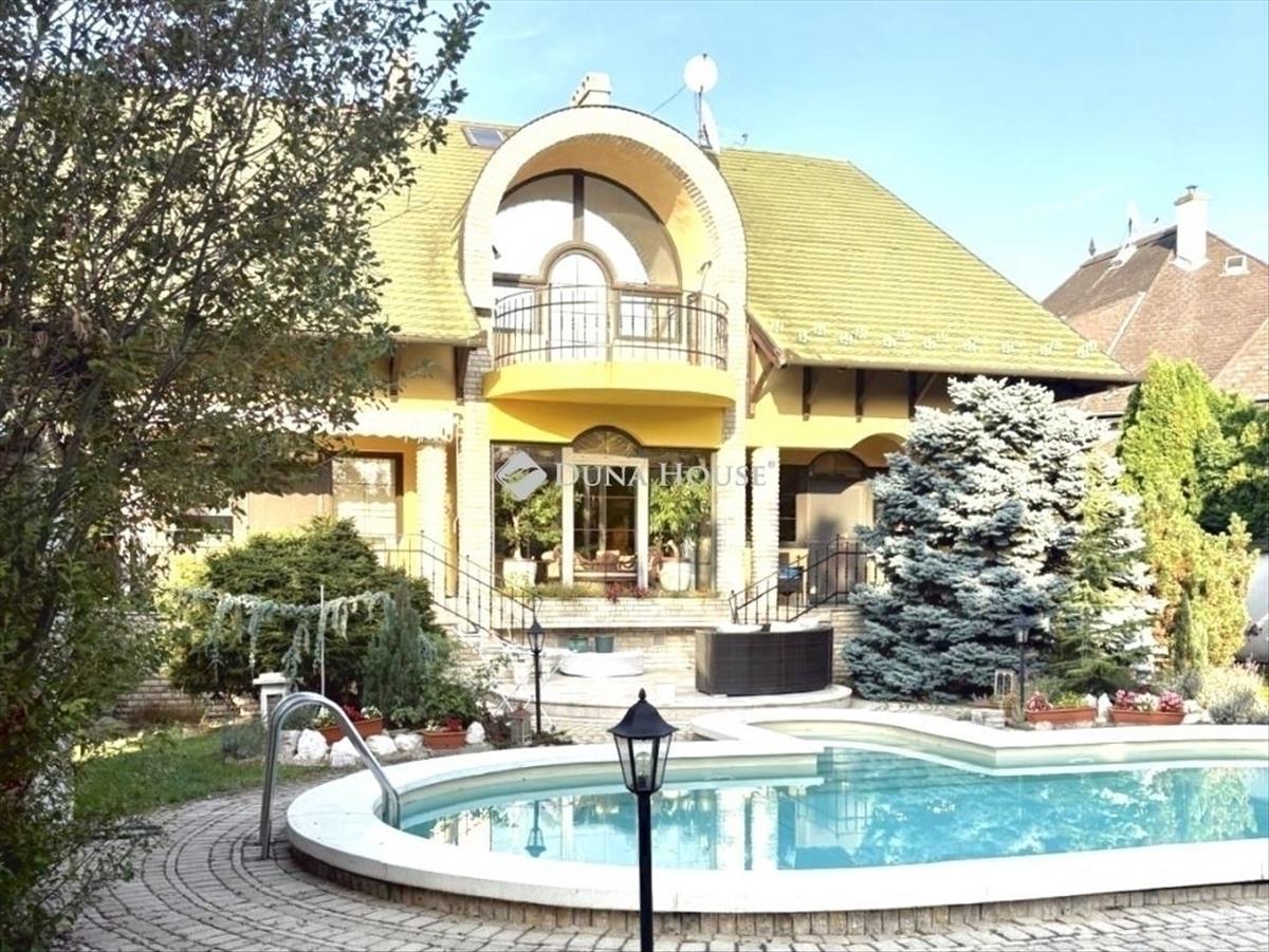 Privát wellness oázis zöldövezeti nyugalomban időtálló elegancia Árpádföld szívébenEgy csendes, fákkal szegélyezett utcában, Budapest XVI. kerület Árpádföld egyik legkedveltebb részén kínáljuk megvételre ezt a különleges hangulatú, prémium kategóriás luxus családi otthont. Az átmenő forgalomtól mentes, rendezett környezet valódi nyugalmat biztosít, ahol a természet közelsége és az igényes lakókörnyezet harmonikusan egészíti ki egymást. Ez az a hely, ahová jó megérkezni és ahonnan nem siet el az ember. a gondosan kialakított, teljes intimitást nyújtó kert zöldfelületei, árnyékot adó fái és a medence valódi nyári élettérré teszik az udvart. a terasz és a kert ideális helyszíne családi étkezéseknek, baráti összejöveteleknek vagy csendes, elvonulós pihenésnek. a körbekerített telek a nap minden szakában biztosítja a zavartalan privát szférát. a belső terek eleganciája és arányossága már az első pillanatban magával ragad. a világos, nagyvonalú terek, az íves nyílások és a természetes anyaghasználat időtálló harmóniát teremtenek. a márványburkolatok és a teljes házat átszövő padlófűtés egyenletes, kellemes komfortérzetet biztosítanak. a kertkapcsolatos nappali életterek nyitottak és világosak, míg a hálószobák nyugodt, elkülönülő zónákban kaptak helyet. Az akvárium különleges, megnyugtató atmoszférát kölcsönöz az otthonnak. Az ingatlan legalsó szintjén egy exkluzív, privát wellness részleg került kialakításra, amely a mindennapi regenerálódás tökéletes színtere. a különálló jakuzzi szoba igényes kialakítású, apró kavicsos padló és falba épített sótéglákkal, amelyek egyedülálló hangulatot és egészségtudatos környezetet teremtenek. a szauna szoba saját zuhannyal és törölközőszárítóval felszerelt, így a teljes wellness élmény kényelmesen, kompromisszumok nélkül élvezhető. a különálló sószoba valódi ritkaság: nem csupán sóval feltöltött tér, hanem teljes egészében sótéglákkal burkolt falakkal kialakított helyiség, amely ideális a pihenéshez és a légúti regenerációhoz. Ezen a szinten helyet kapott egy rendelőnek kialakított szoba is, amely kiválóan alkalmas egészségügyi, terápiás, szépségápolási vagy akár otthoni irodai funkcióra is. Az ingatlan hosszú éveken át olyan tulajdonos otthona volt, aki szakmájából adódóan kiemelt figyelmet fordított a műszaki állapotra, az egészséges lakókörnyezetre és a folyamatos karbantartásra. a ház megkímélt, kiváló állapotú, azonnal költözhető. a környék infrastruktúrája kimagasló: a közelben elérhetők jó hírű óvodák, iskolák, gimnázium, sportlétesítmények, uszoda és lovarda. a természet közelsége erdős területek, sétára és kikapcsolódásra alkalmas zöldövezetek a mindennapok természetes részévé válik, miközben a belváros gyorsan és kényelmesen elérhető.