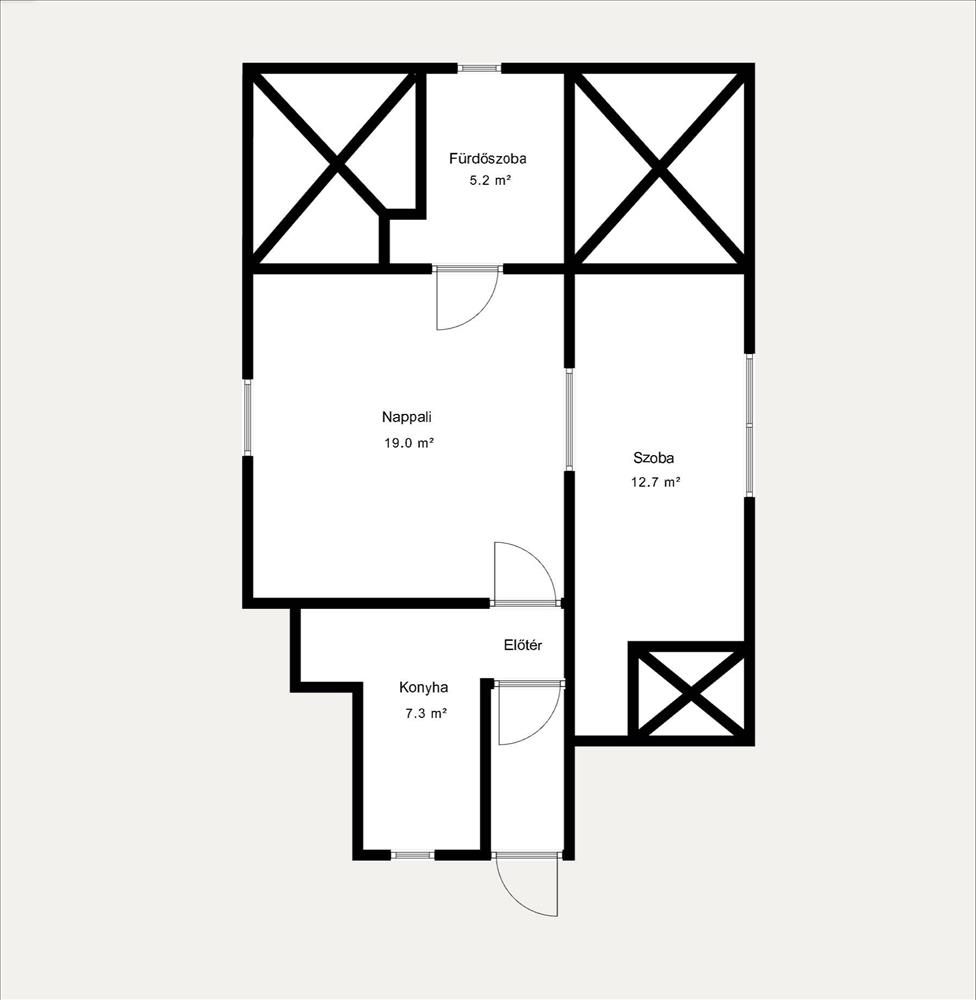 - Emelet: nappali + 1 szoba, konyha, fürdőszoba WC-vel egyben, előszoba