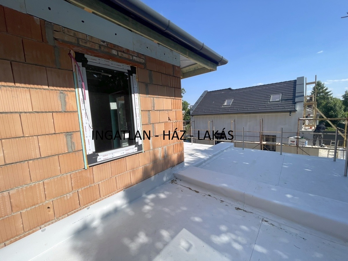 Az emeleten található 3 hálószoba, közlekedő és egy fürdőszoba. a szobákhoz tartozik egy hatalmas, 15 nm-es L alakú terasz, aminek a korlátja üvegből készült.