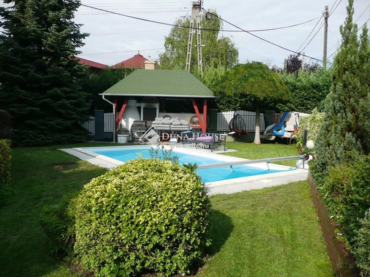 A kertben található 5 x 7 méteres medence automatikus tisztítású, fűtését egy újonnan beszerelt levegős hőszivattyú biztosítja. a mellette kialakított kerti-sütögető hely (kemence, grillező) árammal, hideg- és melegvízzel ellátott. Ideális helyszíne lehet a baráti, családi összejöveteleknek.