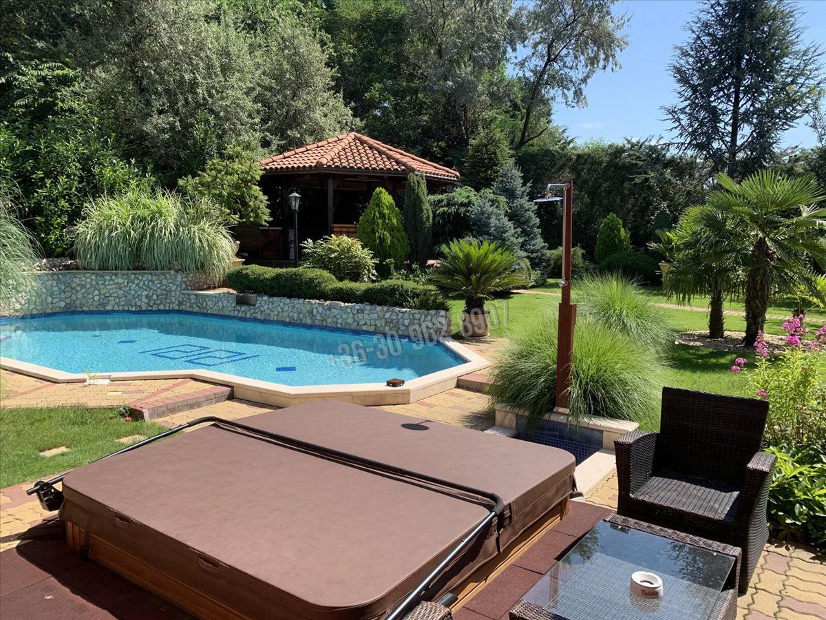 XVI. Ker határán, szuper csendes kertvárosi környezetben, mediterrán stílusú, legmagasabb igényeket kielégítő luxusház, dupla garázzsal, szuper csendes utcában, szép házak szomszédságában, 2007-ben saját részre megépített, 350m2-es, 3m belmagasságú, teljes szintű, d- DNY-i fekvésű, nagyon igényesen kivitelezett, napfényes, hőszivattyúval fűtött medencés, kandallós, tehermentes, körbejárható családi ház, tele extrákkal, gyönyörűen parkosított, kertépítő által kivitelezett, 670m2-es, intim hátsó kerttel, épített medencével, jakuzzival eladó.
