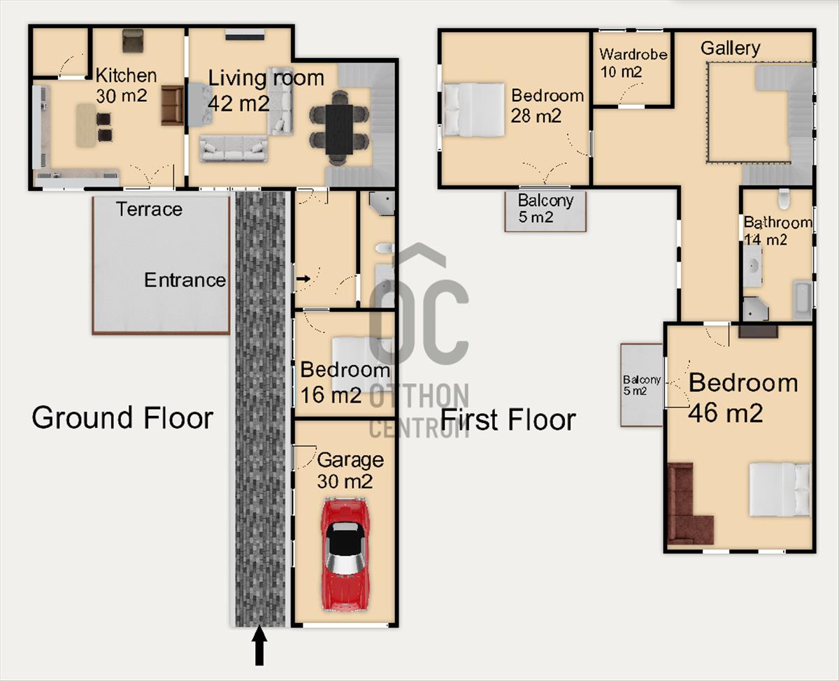 •Mert a 2 fürdőszoba káddal és zuhannyal, valamint a 42 m² nappali lehetősége valódi kényelmet kínál több generációnak is.