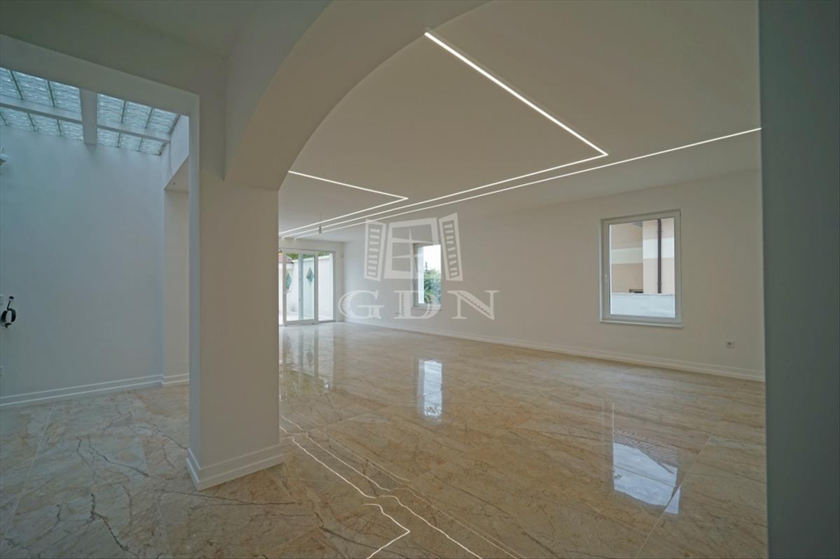 Budapesten a XVII. kerületben a Pesti útról nyíló 848m2-es telken, eladó egy nettó 523m2-es 7 szoba + 2 nappalis, fűthető belső medencés, háromszintes luxus családi ház.
