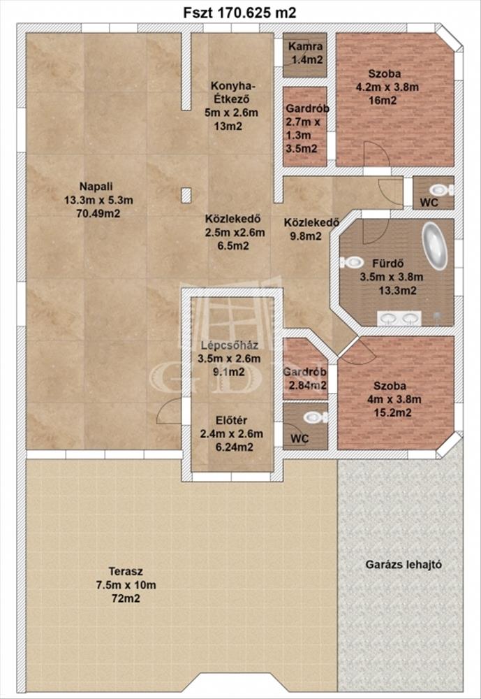 Parkolás az elektromos garázsajtóval szerelt, 13. 3 Méter hosszú és 5. 2 Méter széles, 67. 66m2-es garázsban lehetséges.