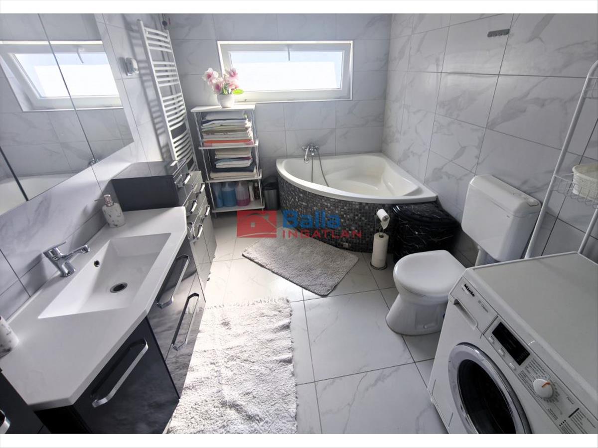 A különálló, 70 m²-es kis ház saját bejárattal rendelkezik, szintén felújított állapotú. Ideális lehet idősebb családtagoknak, fiatal pároknak, vállalkozás céljára vagy akár albérletként is hasznosítható – kiváló befektetés. a szépen gondozott kert öntözését fúrt kút segíti.