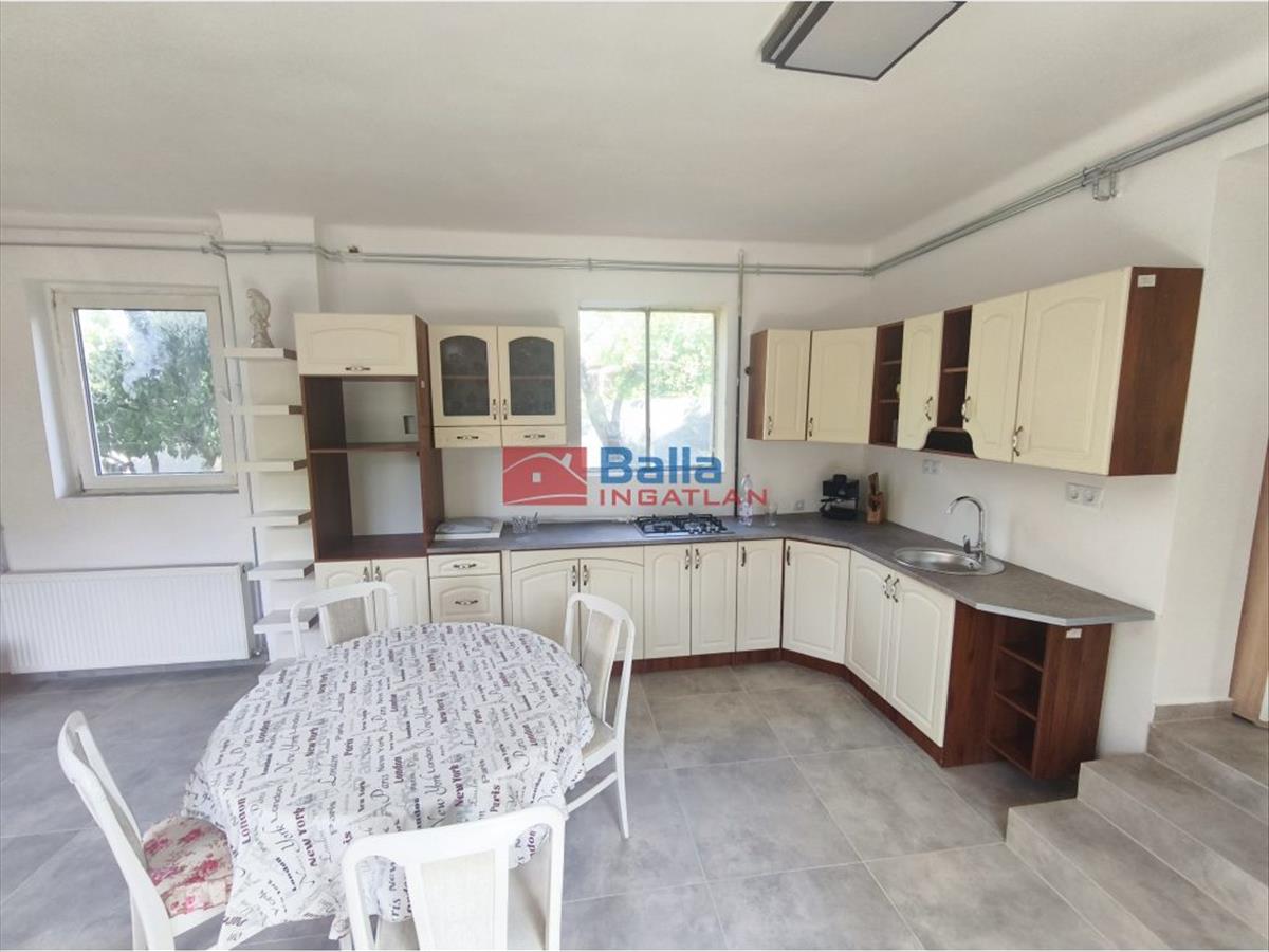 A főépület közel 150 m²-es, kétszintes, beépített tetőtérrel rendelkezik. Világos, tágas terei, kényelmes belső elrendezése és igényesen felújított helyiségei otthonos légkört biztosítanak. a nappali, étkezős konyha, kamra, fürdőszobák, háztartási helyiség és több hálószoba mellett belső bejáratú garázs is segíti a kényelmet.