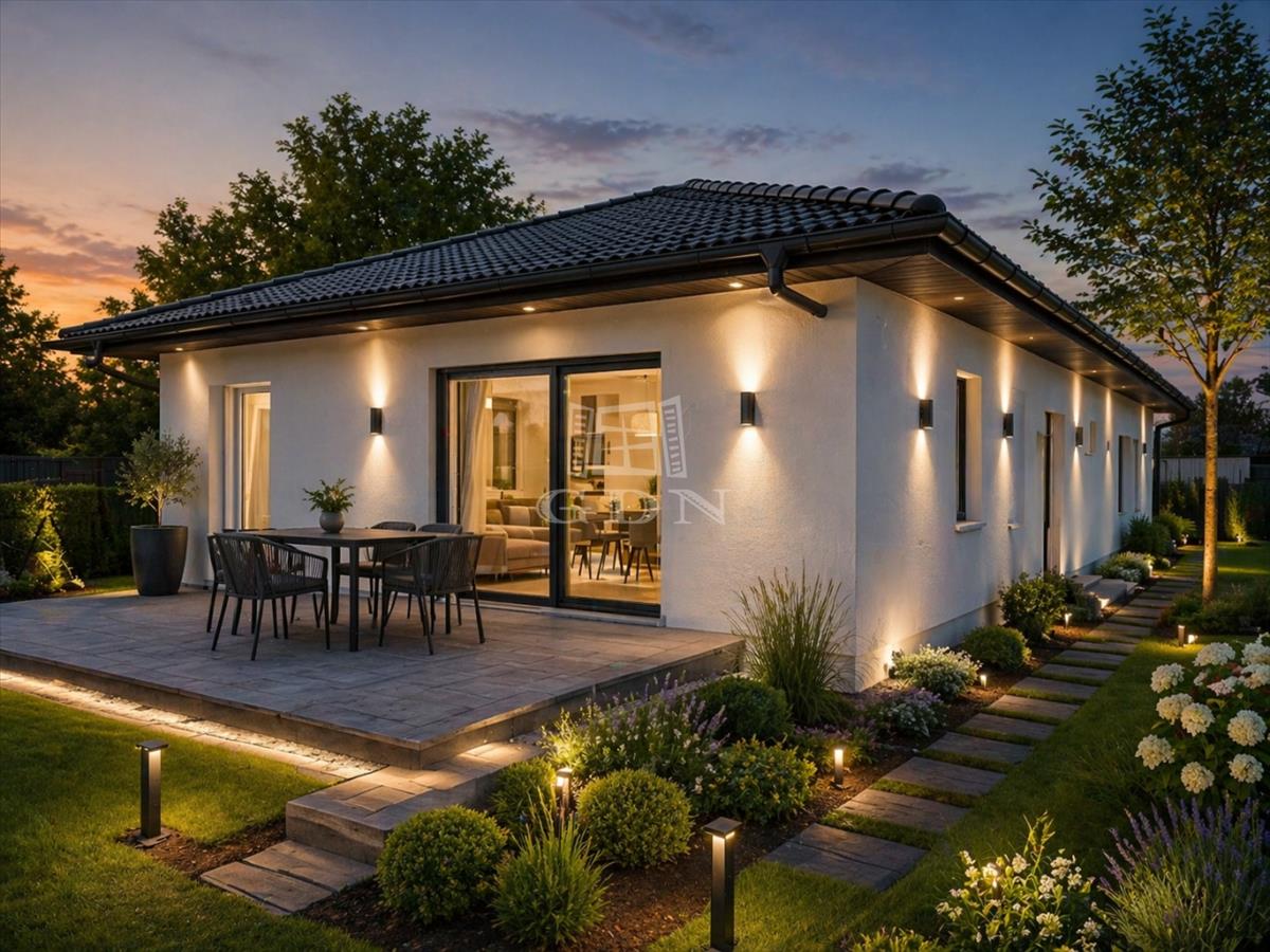 A ház praktikus elrendezésének köszönhetően négy külön nyíló szoba és egy tágas amerikai konyhás nappali biztosítja a kényelmes mindennapokat, miközben a korszerű műszaki tartalom alacsony fenntartási költségeket garantál.
