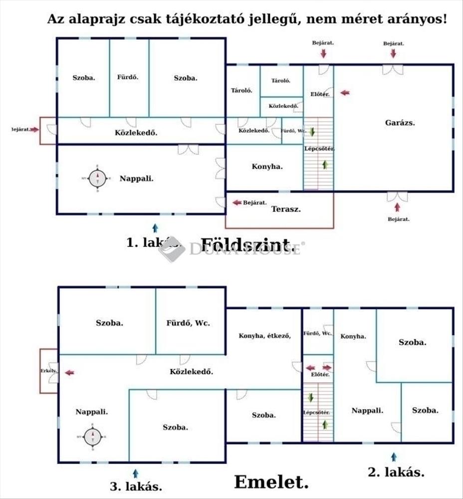 Emelet (két külön lakás a zárt lépcsőházból):