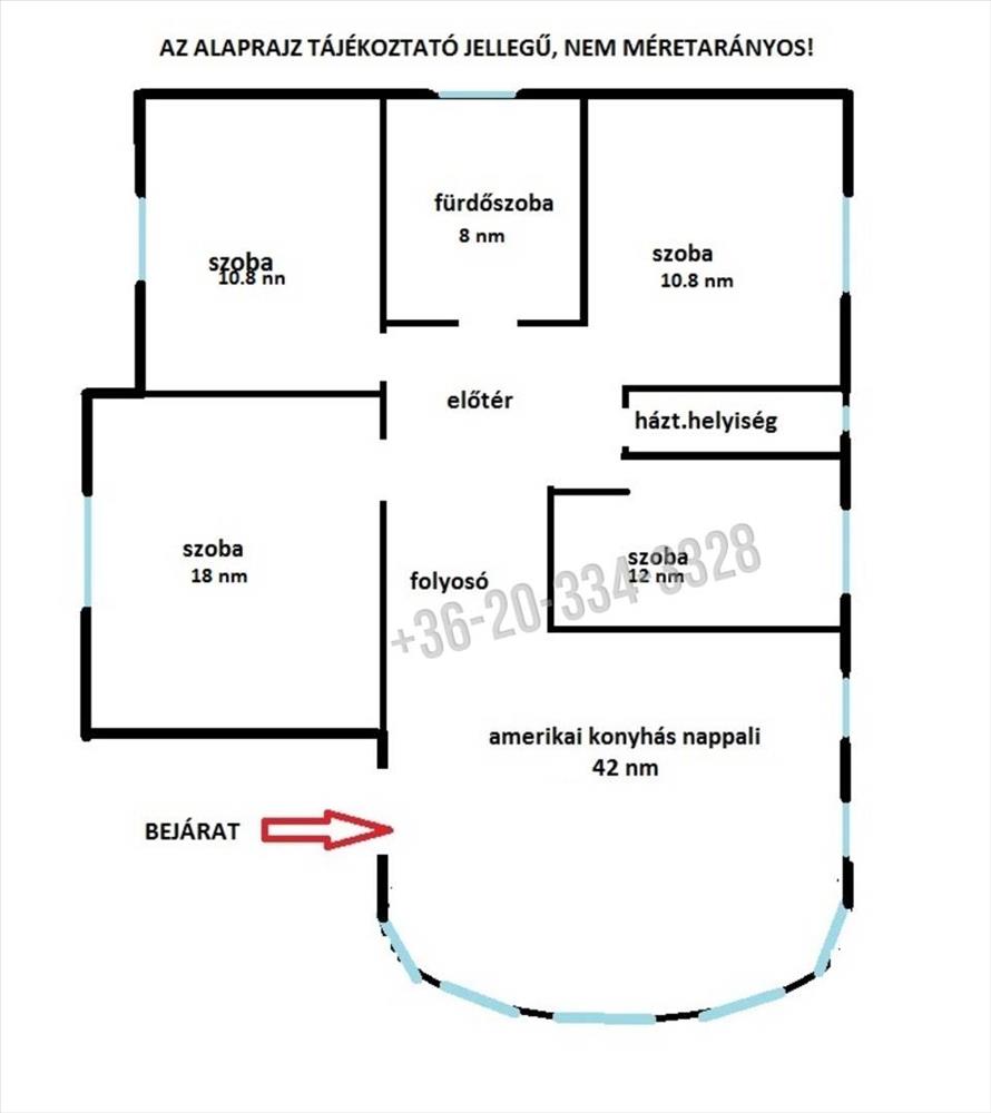 Az alaprajz tájékoztató jellegű, nem méretarányos!