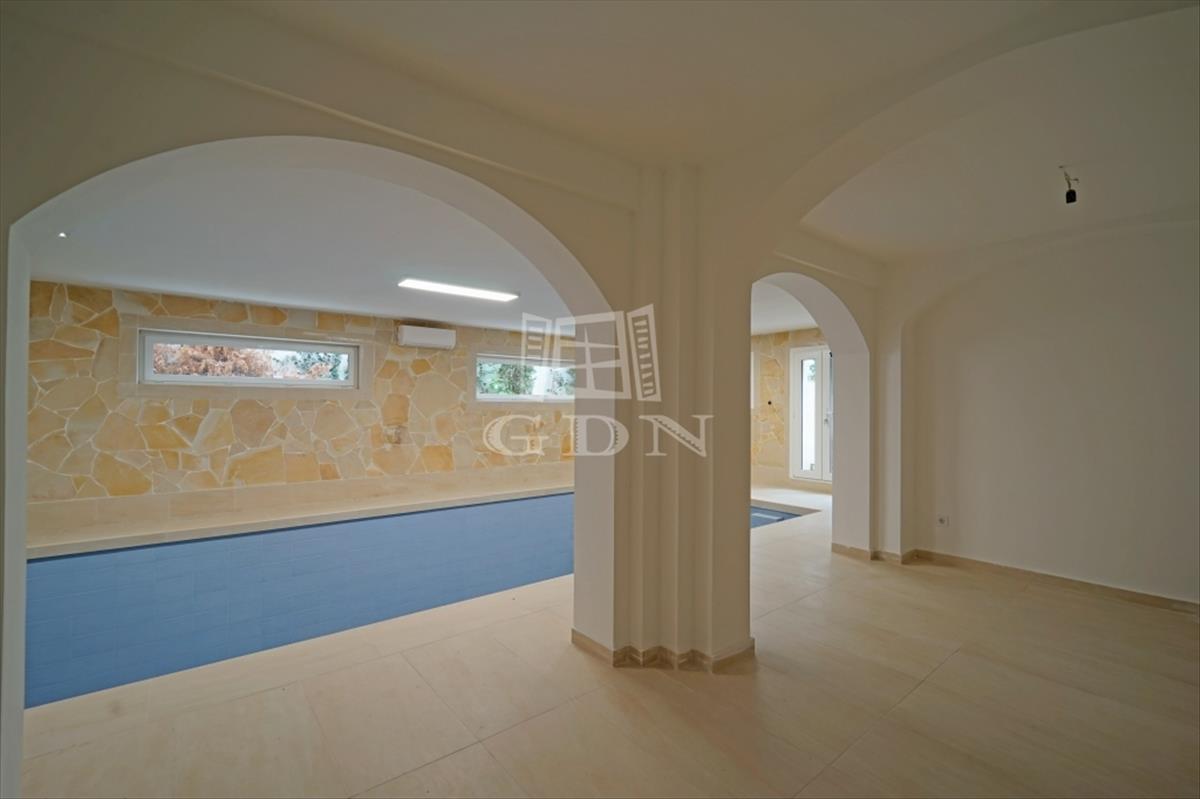 Budapesten a XVII. kerületben a Pesti útról nyíló 848m2-es telken, eladó egy nettó 523m2-es 7 szoba + 2 nappalis, fűthető belső medencés, háromszintes luxus családi ház.