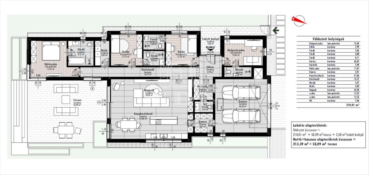 Belső burkolatok: laminált- és Gres burkolatokkal készülnek a belső terek. a ház teljes belső