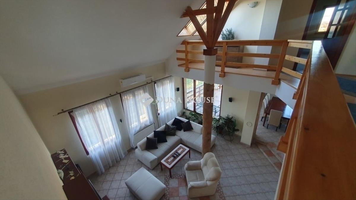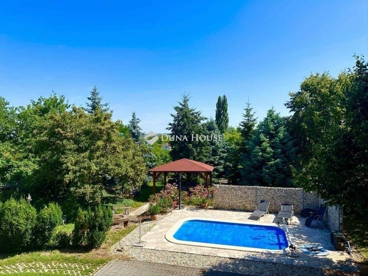 A XVII. kerületben Rákoscsabán, önálló körbejárható, 898 m2-es telekkel rendelkező, 2 generáció együtt élésére alkalmas, 2 külön bejáratú lakással rendelkező, medencés, napelemes családi házat ajánlok szíves figyelmébe. Az ingatlan sok extrával: medencével, kerti tavacskával, szép karbantartott kerttel, teraszokkal, 2 állásos garázzsal, napelemmel, klímával, riasztóval, elektromos kapuval van felszerelve. a kertben van egy gyűrűs kút szivattyúval ellátva amelyről a kert locsolása megoldható. Az épület esztétikai és műszaki szempontból is jó állapotban van, 2000-ben épült, B 38 - as téglából, 3 cm felfújt szigeteléssel, plusz vakolattal. 2021- Ben napelemek kerültek felszerelésre 9 kW-os inverterrel. Hő és hangszigetelt fanyílászárok vannak thermoplan üvegezéssel, a tetőtérben Velux nyílászárókkal felszerelve. Összesen 299 m2-es a lakótér a házban, a két lakásban együttesen számolva. Alaprajzát tekintve remek elosztású, hiszen a 2 lakás teljesen külön bejáratú, valamint a szobák mindkét ingatlanban külön nyílnak, tágas kényelmes terekkel rendelkeznek. a nagyobb lakás összesen 215 m2-es, 5 szobás, dupla-komfortos, teraszos. a belső két szint tökéletesen elválasztja a nappali részt és a privát területeket, így erősítve az otthon többfunkciós karakterét. a földszinti részen egy belmagasságú, átriumos nappali teraszkapcsolattal, étkezős konyhával, fürdő + wc, kamra, háztartási helyiség, előtér került kialakításra. a felső szinten a közlekedőrészből nyílik 4 szoba, nagy sarokkádas fürdőszoba + wc -vel, valamint 2 gardróbhelyiség van kialakítva, és helyet kapott egy dolgozósarok rész is. a másik lakás 84 m2, 3 szobás, teraszos, jó állapotú, szintén kényelmes méretű étkezős konyhával, kamrával, fürdő + wc, előszoba helyiségekkel van kialakítva. Több hűtő-fűtő klíma is van felszerelve az ingatlanokban, akár fűtés kiegészítésként, illetve a nyári időszakban is kellemes hőérzetet tud biztosítani az ott lakók számára. a ház riasztóval felszerelt. a kert szépen karbantartott, ahol helyet kapott egy fedett szaletli is, ami a medence közelében helyezkedik el. a ház részben alápincézett (73 m2), kétállásos garázs és tárolóhelyiségek is lettek kialakítva. Itt található a ház fűtését és meleg víz előállítását biztosító gépészet is, lakásonként külön- külön kondenzációs kazánnal és indirekt tároló a meleg víznek. a csendes, rendezett környezetben lévő jó állapotú családi házba a telekre, térkövezett felületen lehet beállni elektromos kapunyitással és további gépkocsik számára is van beállási lehetőség. a vételár részét képezi a konyhabútor, a klímák, illetve minden egyéb berendezés ami megállapodás tárgyát képezheti. a környék ellátottsága kiváló, orvosi rendelő, posta, bevásárlási lehetőség, vonatállomás, iskola, óvoda elérhető. Autóval az M0-ás, és Örs vezér tere gyorsan megközelíthető. Érdeklődésével és megtekintési szándékával várom megtisztelő hívását.Schaffer. Janos@dh. Hu