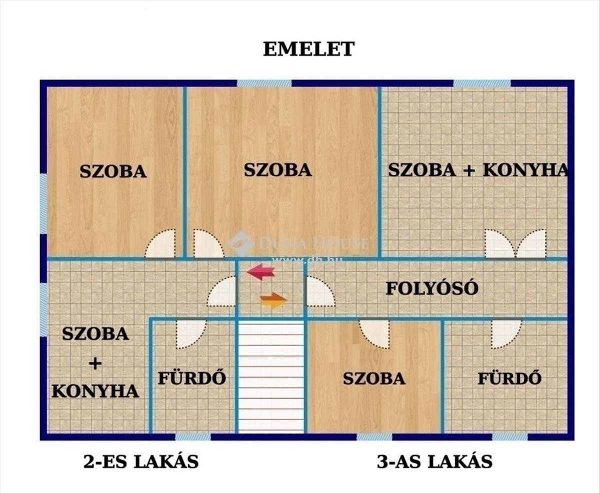 Az emeletan két lakás került kialakításra az évek alatt. Egy 36 nm-es 1+1 félszobás, továbbá egy 55 nm-es 2 szobás lakás.