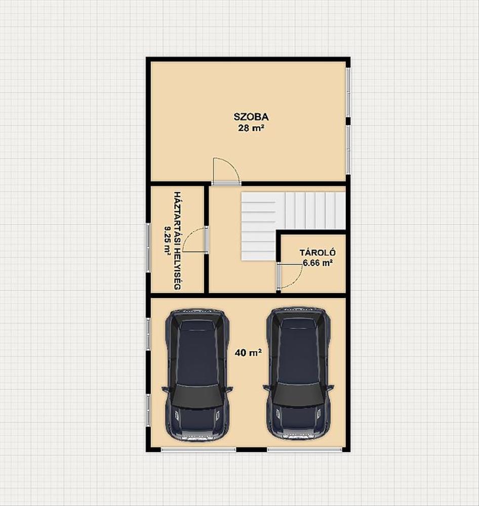 Szuterén: szoba, kamra, mosókonyha + mellékhelyiség, dupla állásos garázs.