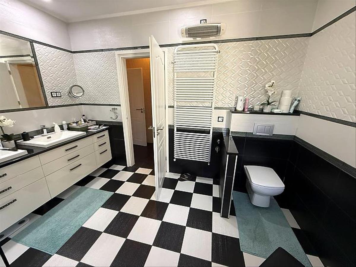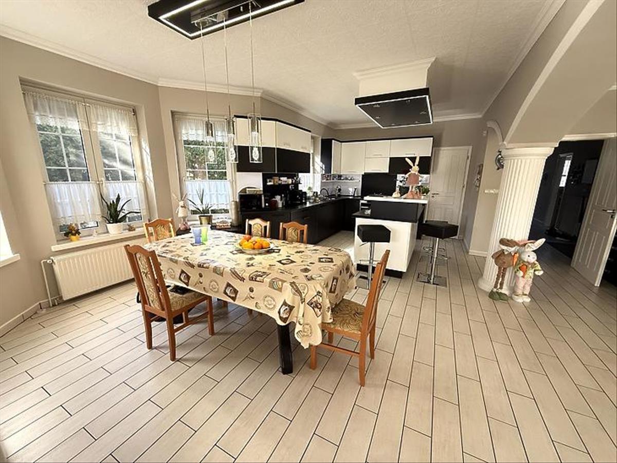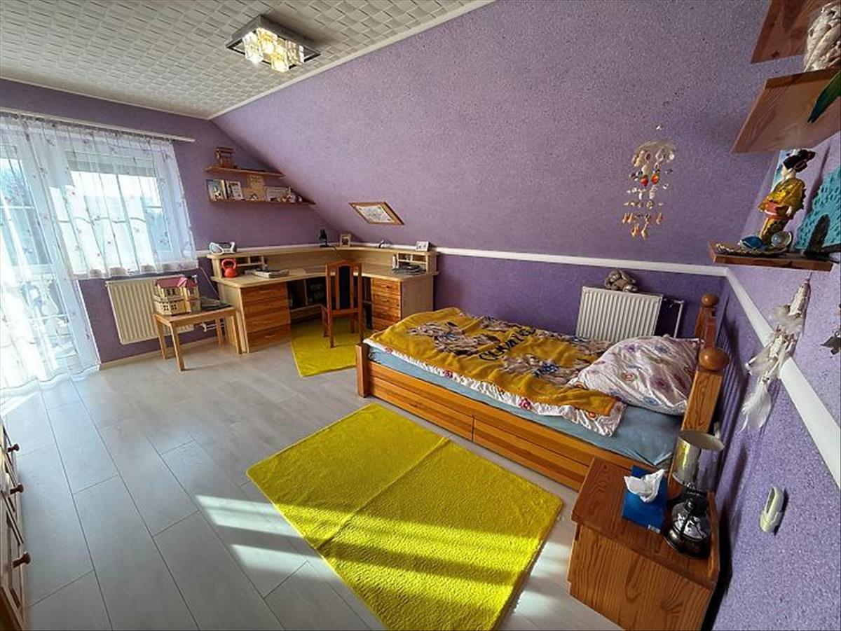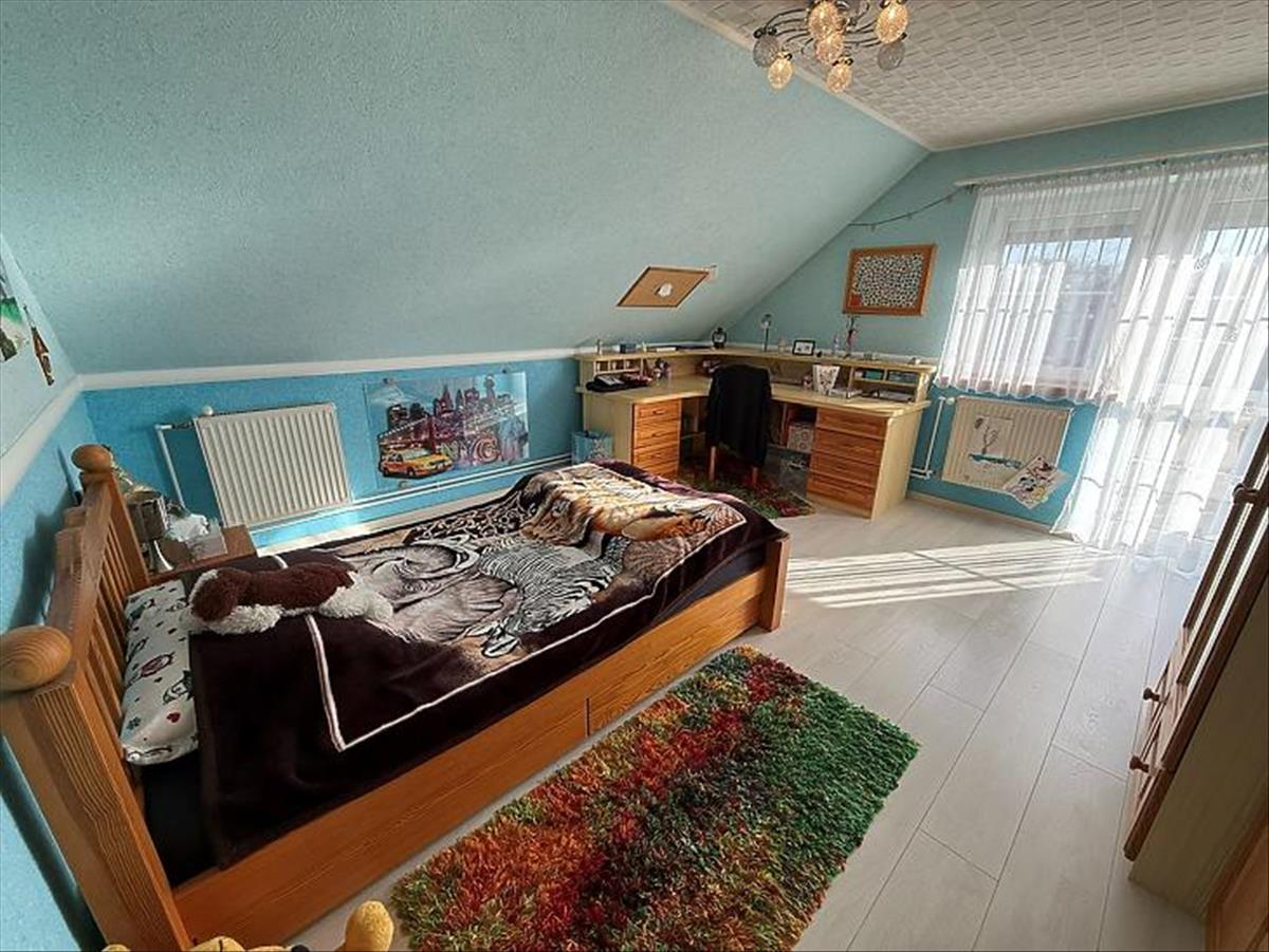 Emelet: 5 szoba, kádas fürdőszoba, + wc, gardrób, közlekedő, mosókonyha, erkély.