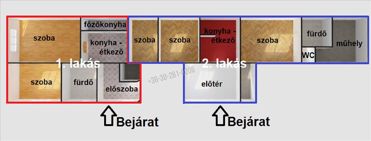 - 2 lakás van kialakítva teljesen külön közműórákkal