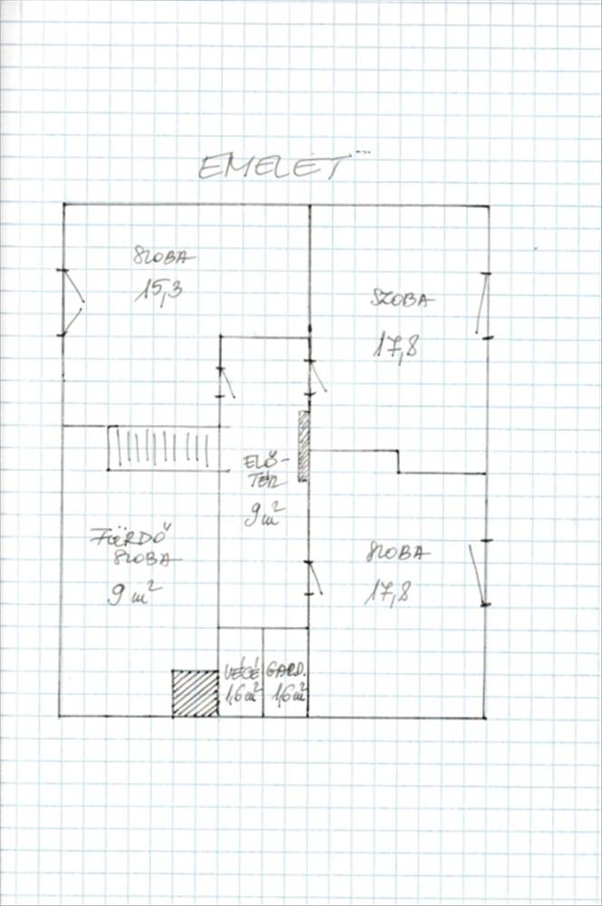-3 teljes értékű hálószoba: 15, 3 nm, 17, 8 nm, 17, 8 nm