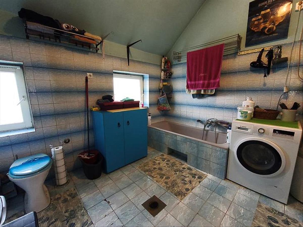 Földszint: 3 szoba, konyha, fürdőszoba + mellékhelyiség, kamra, zárt terasz, műhely.