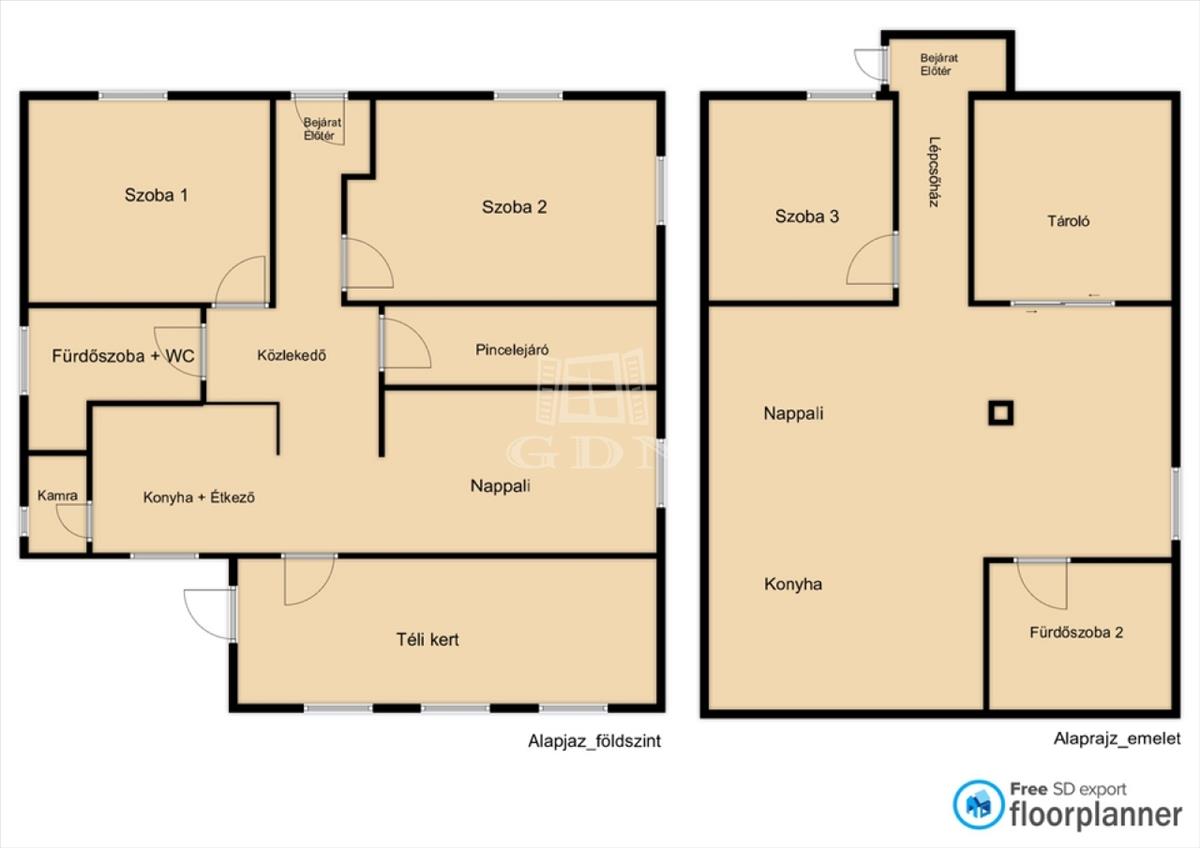 - fűtésrendrendszer: gázkazán (radiátoros hőleadás), kandalló