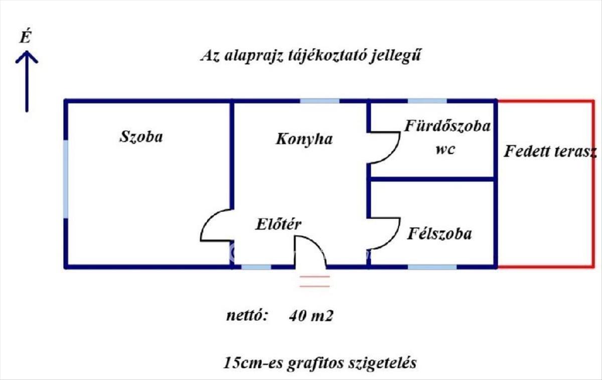 40 M² fűtött lakótér + 14 m² fedett terasz