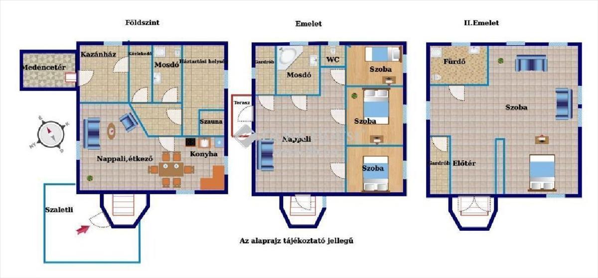 Eladó Rákosliget emblematikus háza, a körpanorámás Villa! a Gellért heggyel azonos magasságban épült, körpanorámás, pazar kilátással rendelkező, 3 szintes, szintenként 100 négyzetméteres ház egy 600 négyzetméteres telken helyezkedik el. a térkővel borított udvarra gyalogkapun vagy extra széles úszókapun keresztül juthatunk, itt kényelmesen 4 autó elfér, a ház előtt pedig további 4 parkolhat. a ház mindkét bejárata a kíváncsi szemektől rejtve, az utcáról nem láthatóan hátulról mehetünk be a főbejáraton. Felette nagy területű szaletli védi a hazaérkezőt és vendégeit az esőtől, széltől. a főbejáraton belépve a három szintet kiszolgáló lépcsőházba jutunk, így igény szerint könnyen 3 lakásos társasházzá is alakítható az épület, vagy akár többgeneráció számára is átalakítható. Innen balra nyílik a földszinti, fél-szuterén elhelyezkedésű amerikai konyhás nappali, a konyhából pedig a hátsó helyiségekbe haladhatunk tovább: mosókonyha, szauna, fürdőszoba, kazánház. a kazánházból jutunk a fedett medence térhez. a medence és gépészete részlegesen működőképes, felújítása már az új tulajdonosra marad ugyanígy a földszinti bejárat előtt található szaletli tető. a lépcsőházban felfelé haladva a középső szint boltíves bejáratán jelenleg nincs ajtó, így szabadon léphetünk a padlólapozott nappaliba ahonnan a 3 laminált padlós hálószoba, a gardrób, fürdő és külön mellékhelyiség nyílik. a harmadik -már szeparált- tetőtéri szint hatalmas, kétszárnyú üveges műanyag ajtón keresztül közelíthető meg. a teljes tér padlólappal borított, falsík és tetőtéri ablakain keresztül körpanorámát élvezhetünk. a kertet óriás tuják védik a széltől, a belátást kőkerítés gátolja. a terasz alatti 10 négyzetméteres fedett részen rossz időben is nyugodtan, hangulatosan lehet borozgatni. a ház fűtését cirkó fűtés biztosítja, a hűtést szükség esetén 4 légkondicionáló segíti. a mosókonyhában meleg vizes mosógép kiállás is kiépítésre került. a meleg víz ellátást egy 520 literes napkollektor rendszer támogatja, így ősztől-tavaszig nem kell vízmelegítésre költeni, sőt a medence is felfűthető vele, de télen is jelentősen előmelegített vízzel dolgozhat a gáz átfolyó vízmelegítő. a kiépített 3x20A-es ipari áram a villanyfűtésre történő áttérést is lehetővé teszi, az ipari áram a földszinten és a felső szinten is kiépített. Igény esetén további fűtő klímák is könnyedén telepíthetők. Három földszinti ablak kivételével minden ablak már hő- és hangszigetelő, szúnyoghálós műanyag ablak, az ajtók nagy része is cserélve lett. Közvetlen közelében nincs közösségi létesítmény, így a csend, nyugalom teljesen garantált, az utcában nincs átmenő forgalom, ugyanakkor az m0 csak 5 perc autóval. Az utca végén (200m) park és játszótér, a park szélén buszmegálló található. Az utca másik végén kerékpárút vezet, amelyen egészen Zuglóig eljutunk, itt található egy kis közért is. Séta távolságban van még cba, Spar, barkácsbolt, étterem, cukrászda, konditerem, teniszpálya, templom, orvosi rendelő, gyógyszertárak, fodrászat és kozmetika és virágüzlet is, valóban minden karnyújtásnyira megtalálható. Az ingatlan per- és tehermentes.