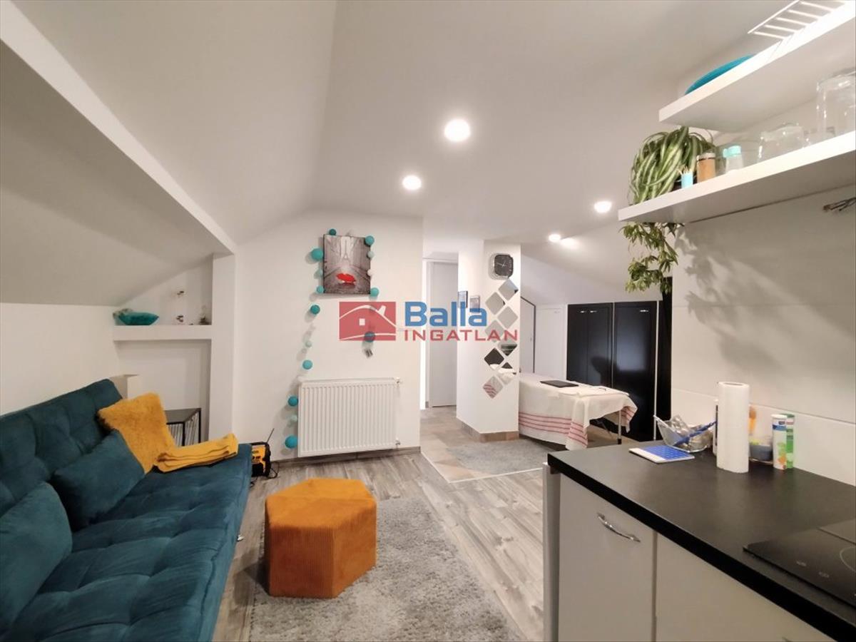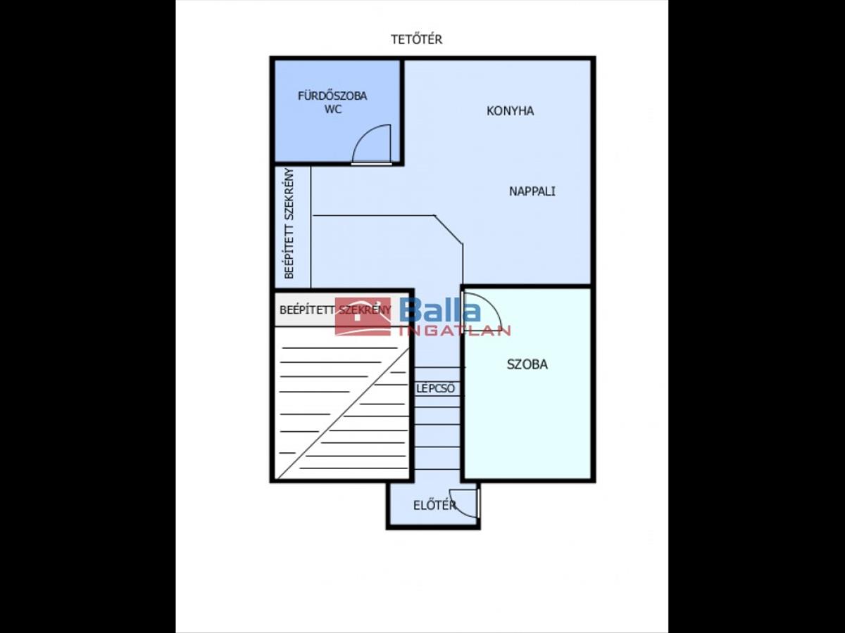 •Tetőtér: előtér, amerikai konyhás nappali, 1 nagy méretű hálószoba, fürdőszoba, beépített szekrények, klíma.
