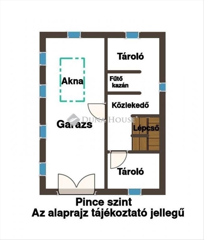 Itt található a szerelő aknás dupla garázs, továbbá két tároló, közlekedő és a gázkazán, illetve a lépcsőfeljáró.