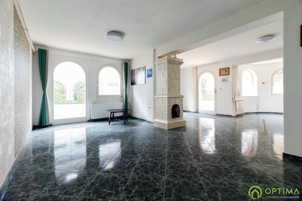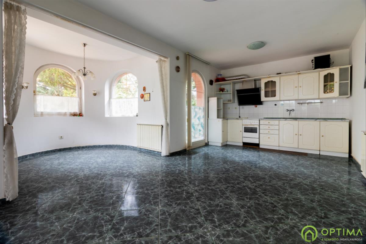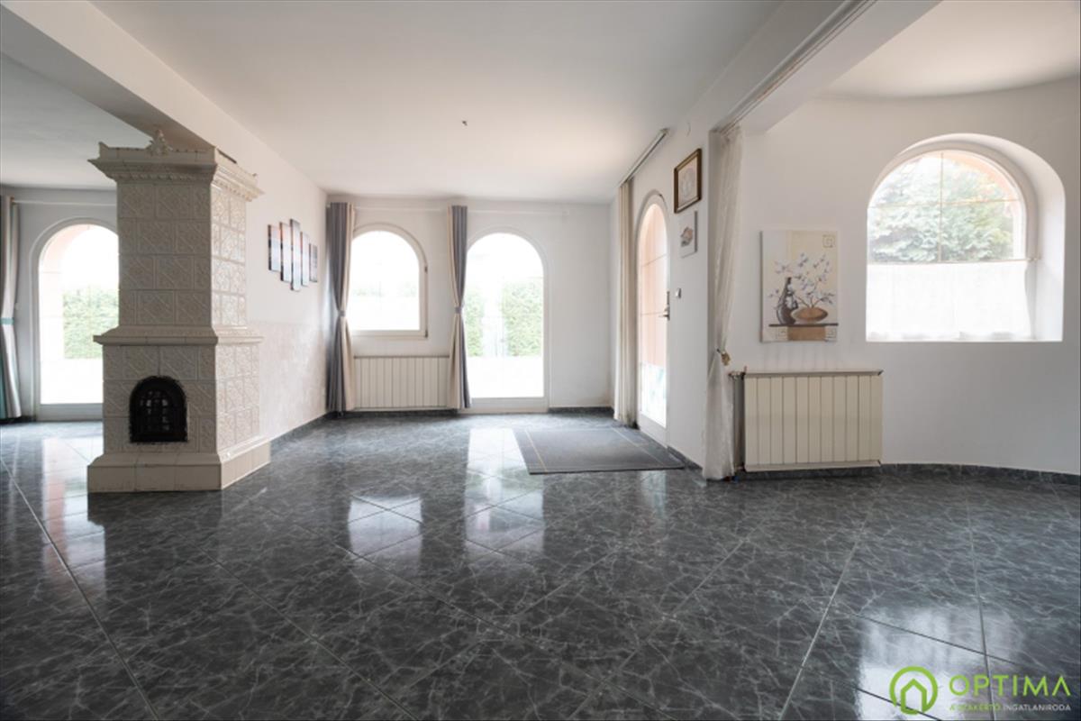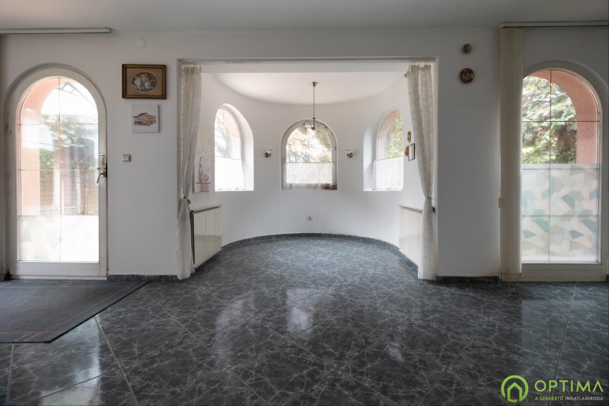 A ház egyedi boltíves ablakai elegáns karaktert kölcsönöznek az épületnek és azonnal meleg, barátságos hangulatot árasztanak. Az előszobából három külön nyíló, világos hálószoba nyílik, míg az amerikai konyhás nappali és étkező a család központi tere lehet.
