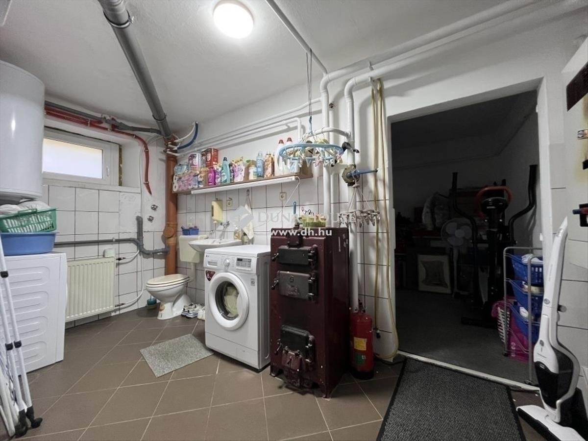 Az alagsor következő helyisége egy háztartási helyiség, ahol mosógép, szárítógép, vegyes tüzelésű- és gázkazán is helyet kapott.